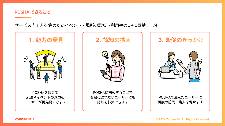 POSHAは、観光地の回遊データを可視化し、混雑を分散・最適化する観光DXプラットフォームです。 データ分析を通じて来訪者の行動傾向を把握し、販促・施設運営・経済効果の向上を一体的に支援。地域観光の持続的成長を実現します。
