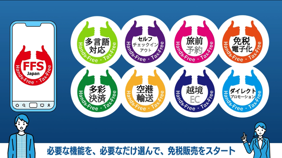 「広域免税販売支援サービス」で小規模店でも免税販売が可能! 既存の免税販売制度に則った手続きで、旅行者・販売店舗・運営それぞれが抱えていた「手間」「入力ミス」「支払・請求ミス」等を省くための支援システムです。 小売店での免税販売をより手軽に扱うことが可能となります。
