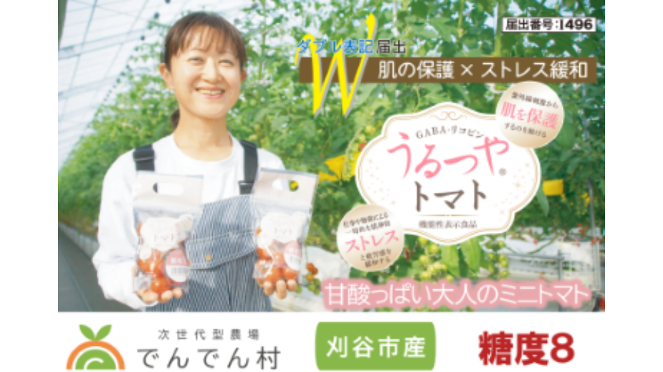 紫外線刺激から肌を保護し、ストレス緩和する糖度8以上の機能性表示食品ミニトマト「うるつやトマト」